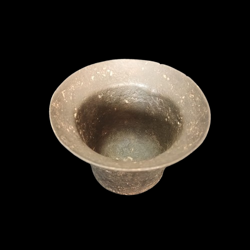 Almofariz Início Acervo Museológico Almofariz Baixar Número de registro192DenominaçãoAlmofarizFotógrafoAndré BrasilData da fotografia2007Esfera de proteção legalFederalTipo de tombamentoTombamento em conjuntoDimensõesAltura (cm): 8,7 Largura (cm): Comprimento (cm): Profundidade (cm): Diâmetro (cm): 12,0 Peso (g): Circunferência (cm):Resumo descritivoAlmofariz de bojo em formato de sino, liso, com a boca mais aberta, contornada por um friso inferior.Características estilísticasPeça de origem européia ou mesmo brasileira, em bronze, datável do século XVIII.Características iconográficas/ornamentaisFriso.Dados históricosNão foram localizados dados específicos sobre o objeto.Referências bibliográficas/arquivísticasFicha Cadastral de 21-03-1975; Ficha de Conservação e Restauração 01-10-1990; Ficha Topográfica 1991-1996.Condições de reproduçãoDomínio público, ver https://museudoouro.acervos.museus.gov.br/reproducao-de-imagens-do-acervo/