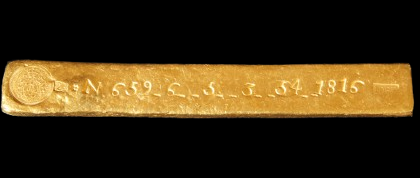 Barra de ouro de 23 quilates fundida na Antiga Casa de Fundição de Mato Grosso no ano de 1816.