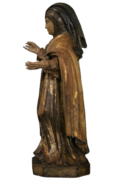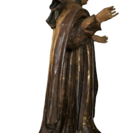 Imagem de origem mineira, datável do século XVIII, de boa fatura, em composição atarracada, com panejamento contido em caimentos retos, rosto arredondado em recortes angulares, mãos com dedos afinados; policromia típica da 1ª metade do século.