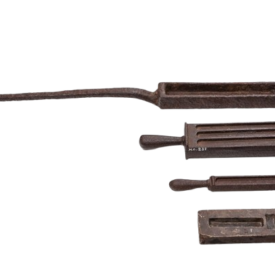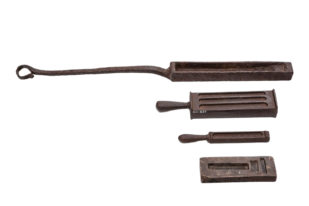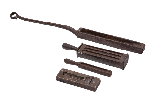 Não foram localizados dados específicos sobre o objeto. As primeiras notícias sobre as Casas de Fundição em Minas Gerais são de 1719, quando um decreto real determinava a criação de uma Casa em cada cabeça de comarca. No entanto, a criação destas Casas não ocorreu em um mesmo momento e o funcionamento delas nem sempre se deu de forma constante. A Casa de Fundição de Sabará, ao que parece, teve seu pleno funcionamento somente a partir de 1734, e mesmo assim com alguns períodos de interrupção, e sobreviveu até 1830, quando foi extinta. Em inventários antigos da Fundição de Sabará (séculos XVIII e XIX) há referência a vários instrumentos de uso na casa como “almofarizes de bronze com sua mão de ferro”, rilheiras, tenazes, balanças, etc.